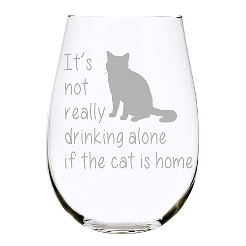 Amazon Com C M It S Not Really Drinking Alone If The Cat Is Home Stemless Wine Glass Cat Laser Etched Handmade