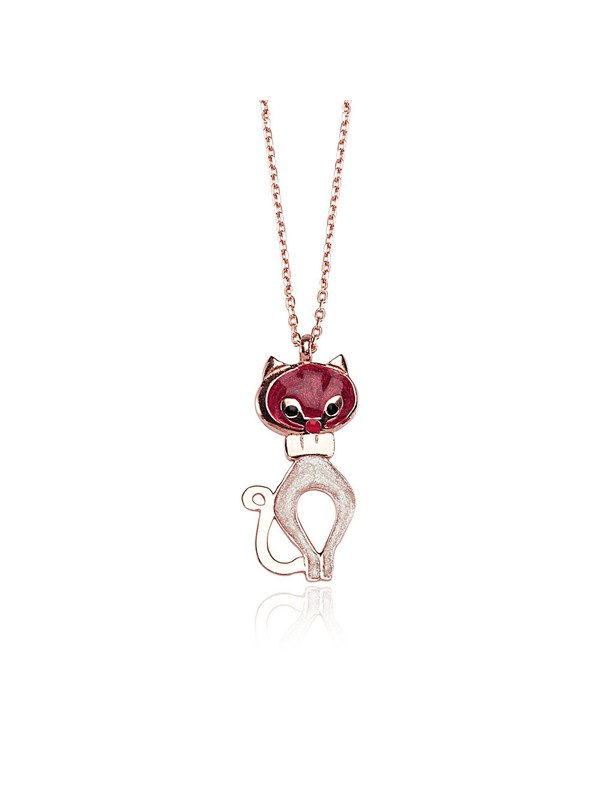Kedi Figurlu Gumus Kolye So Chic