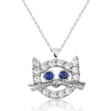 Gumus Taki Dunyasi Rodyum Kaplama Swarovski Zirkon Tasli Kedi Gumus Bayan Kolye