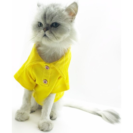 Kemique Sari Polo Yaka Tshirt Kedi Kiyafeti Kedi Elbisesi Fiyati
