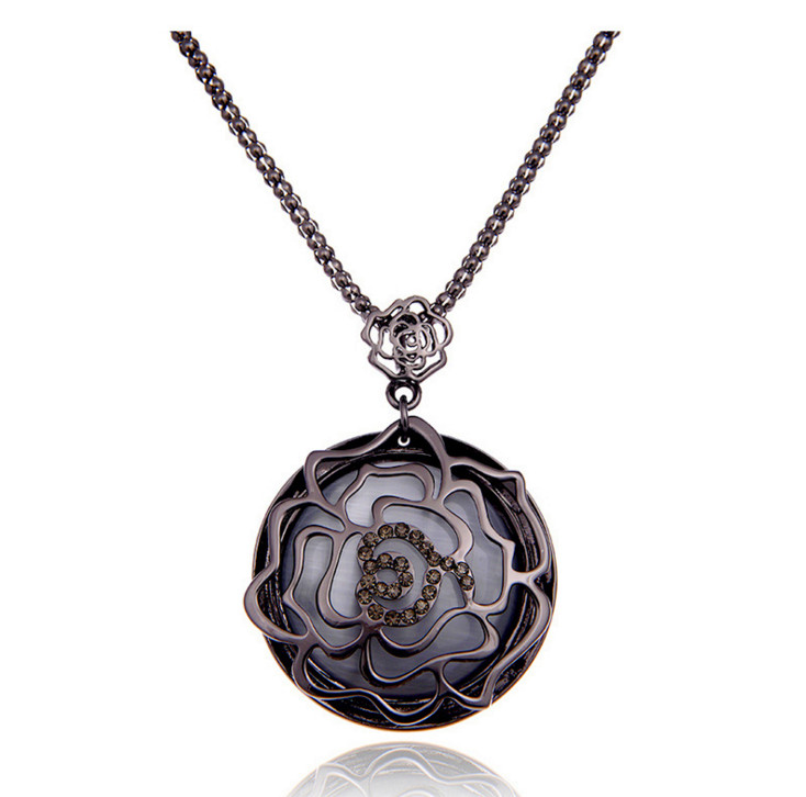 Sumer Telkari Kolye Kedi Gozu Tasli Rose Gumus Kolye 1559