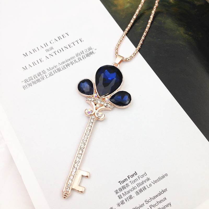 Lacivert Kristal Kedi Gozu Uclu Kolye