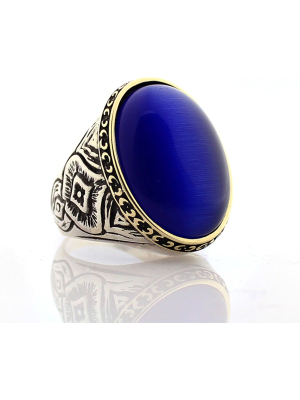 Koyu Mavi Kedi Gozu Tasli Erkek Gumus Yuzuk My1011013 Mygumus Com