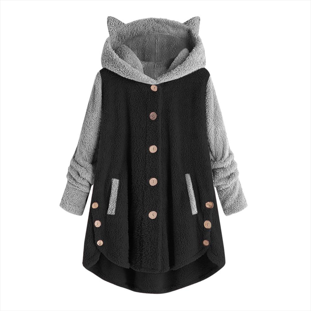 Kadin Kabarik Ceket Gevsek Hoodie Kazak Kati Kis Kawaii Kedi Kulak Kapsonlu Hoodie Dugmeleri Polar Ceketler Esofman Ceket Arti Kapsonlu Ve Kapsonsuz Svetsortler Aliexpress