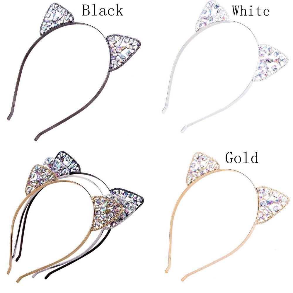 Headbands Rhinestone Silver Metal Cats Ears Women S Jewelry Shopee Indonesia