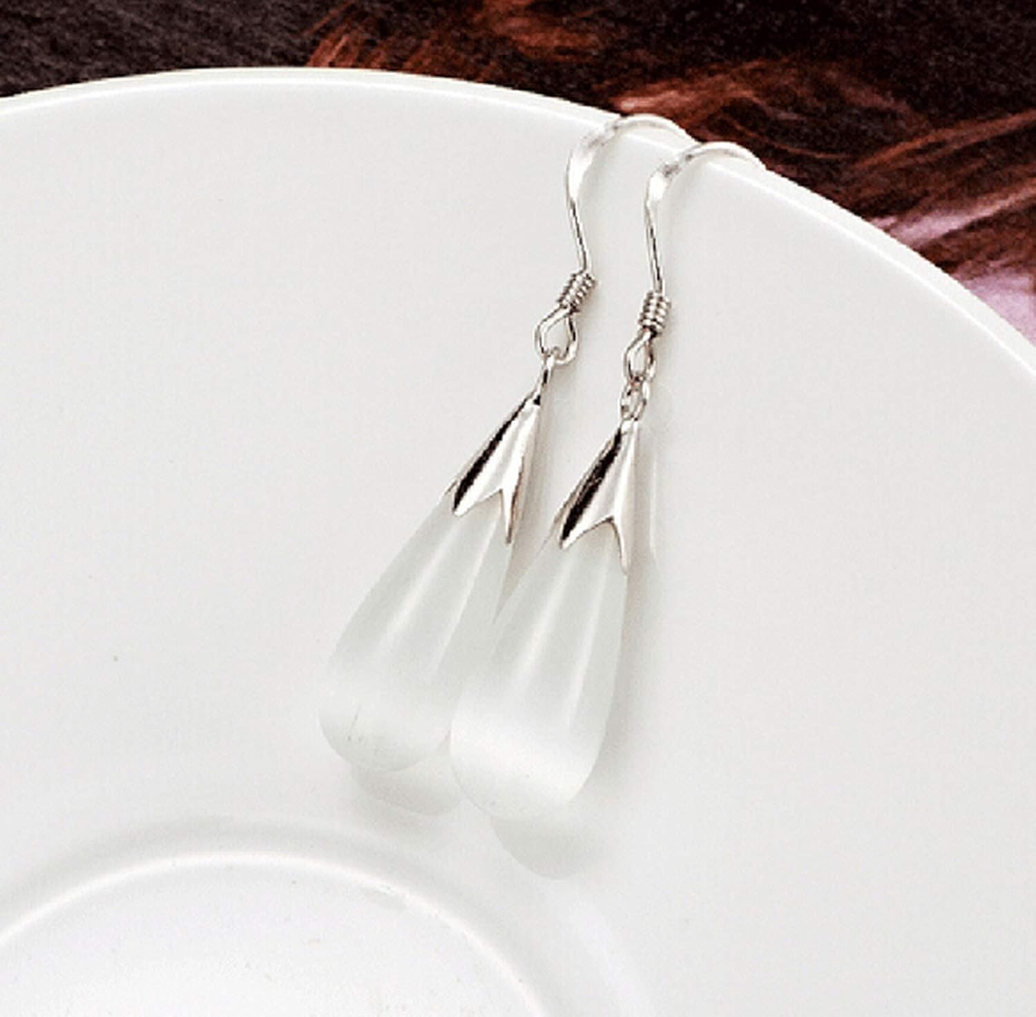 Fashion Jewelry Girl Woman Red Agate Drops Water Opal Cats Eye 925 Sterling Silver Stud Earrings Earrings Stud