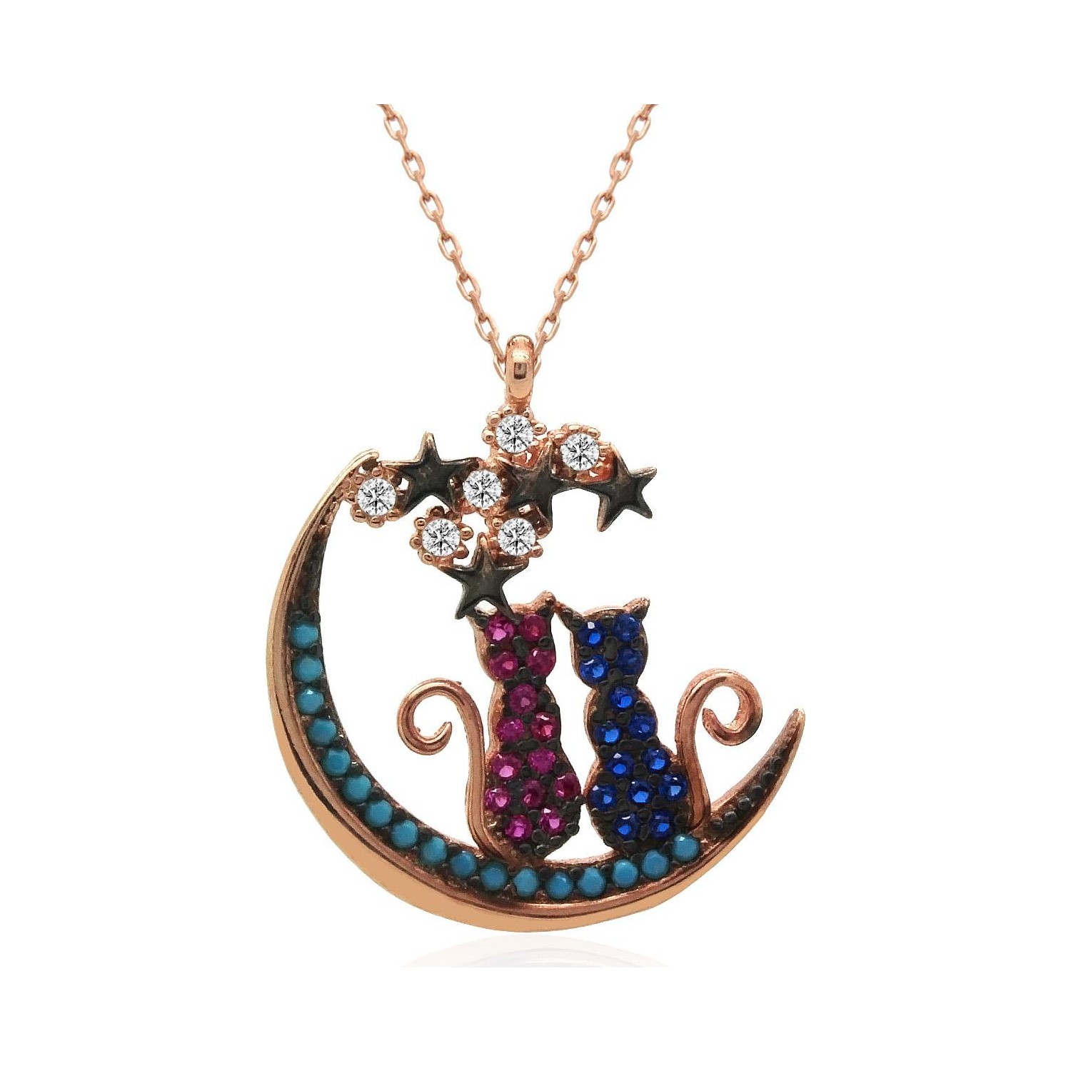 Ay Icinde Asik Kediler Rose Gumus Bayan Kolye Cnggumus Com