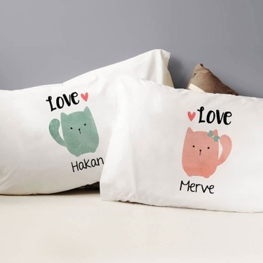 Sevimli Kedi Baskili Kisiye Ozel 2li Yastik Kilifi Seti Hediye Sepeti