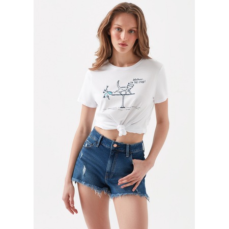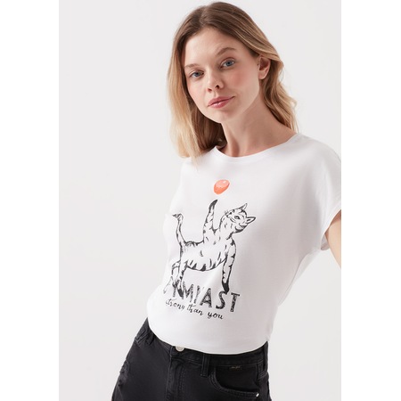 Mavi Kadin Kedi Baskili Beyaz T Shirt 168491 620