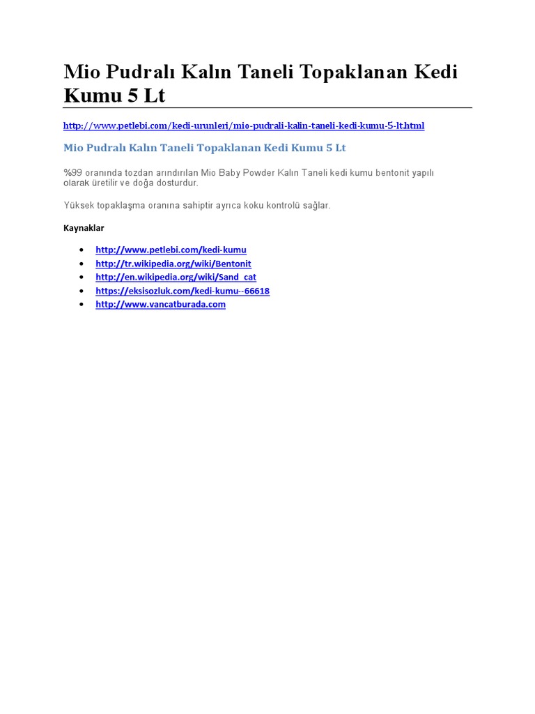 Mio Bentonit Pudrali Ince Taneli Lt Kedi Kumu Bu Mudur