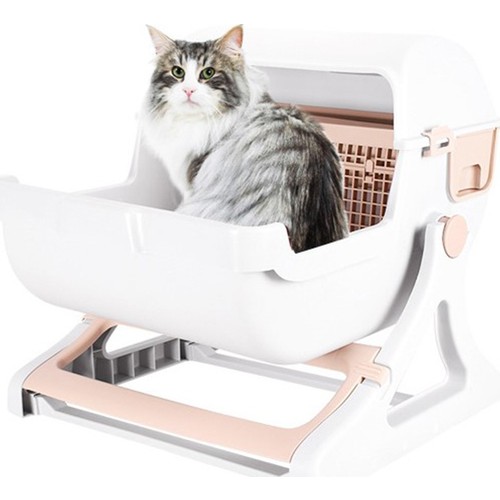 Pembe Yesil Bej Buyuk Yari Otomatik Kedi Tuvalet Hayvan Tuvaleti Yari Kapali Kum Kabi Egitim Seti Pet Malzemeleri Ucretsiz Kargo Kedi Kumu Kutulari Aliexpress