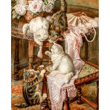 Charles Van Den Eycken Oynayan Kediler Kanvas Tablo Canvastar