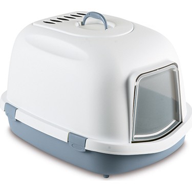 Stefanplast Super Queen Kapali Kedi Tuvaleti Buyuk Boy Duman Mavisi Beyaz Bulgus